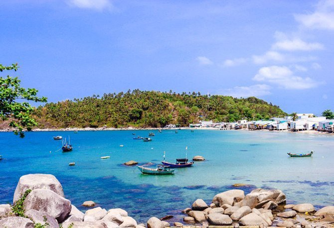 - 8h000 Đoàn tham quan quanh đảo điểm đầu tiên là Dinh Cá Ông, Bãi Bấc, sau đó ghé tham quan và tắm biển tại Bãi Bàng.
